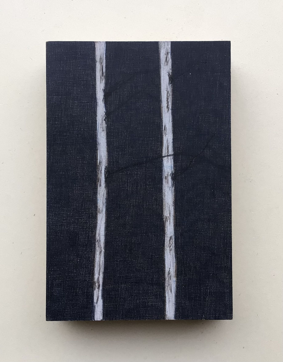 MINIATUR "ZWEI BIRKEN", ZEICHNUNG/OBJEKT/KUNSTWERKSTÜCK, BLEISTIFT/FARBSTIFT AUF MDF 10 X 15 CM, 2025 © MARTINA ETIENNE