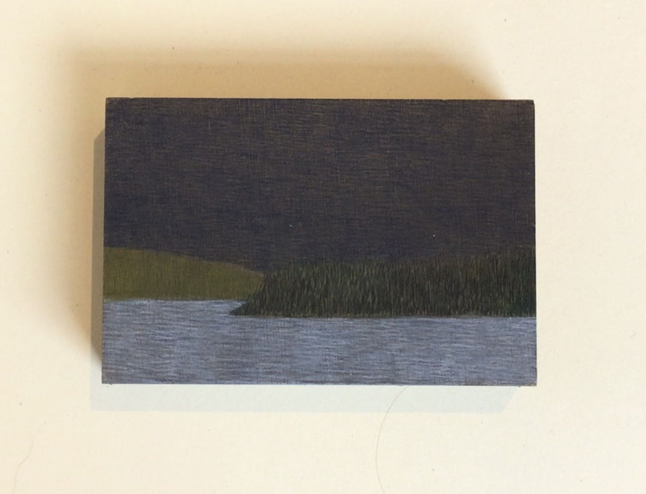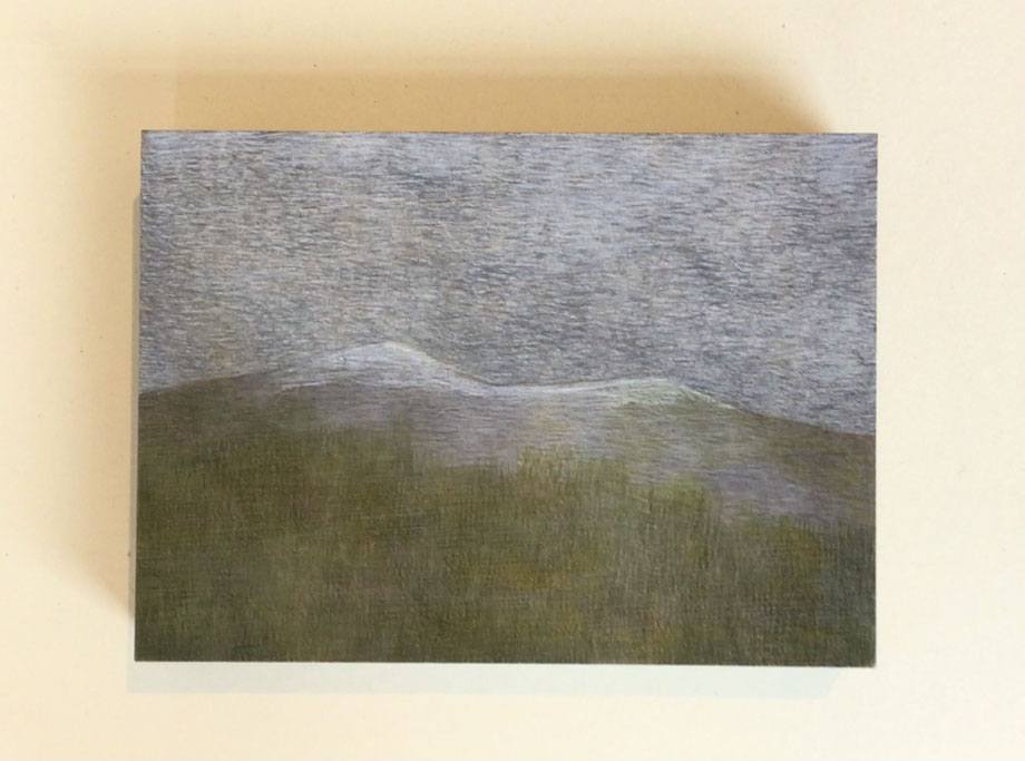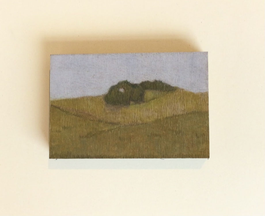 MINIATUR "LANDSCHAFT II", ZEICHNUNG/OBJEKT/KUNSTWERKSTÜCK, BLEISTIFT/FARBSTIFT AUF MDF 10 X 15 CM, 2025 © MARTINA ETIENNE