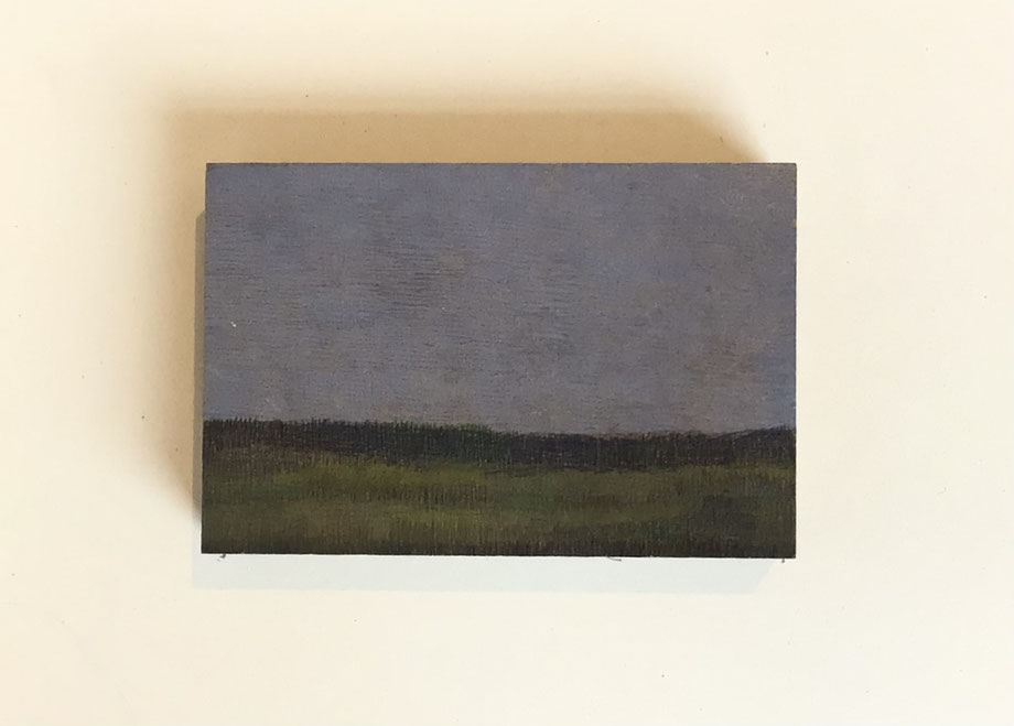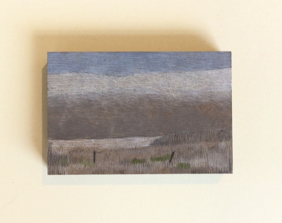 MINIATUR "LANDSCHAFT VI", ZEICHNUNG/OBJEKT/KUNSTWERKSTÜCK, BLEISTIFT/FARBSTIFT AUF MDF 10 X 15 CM, 2025 © MARTINA ETIENNE