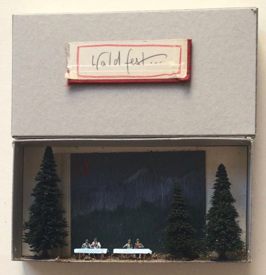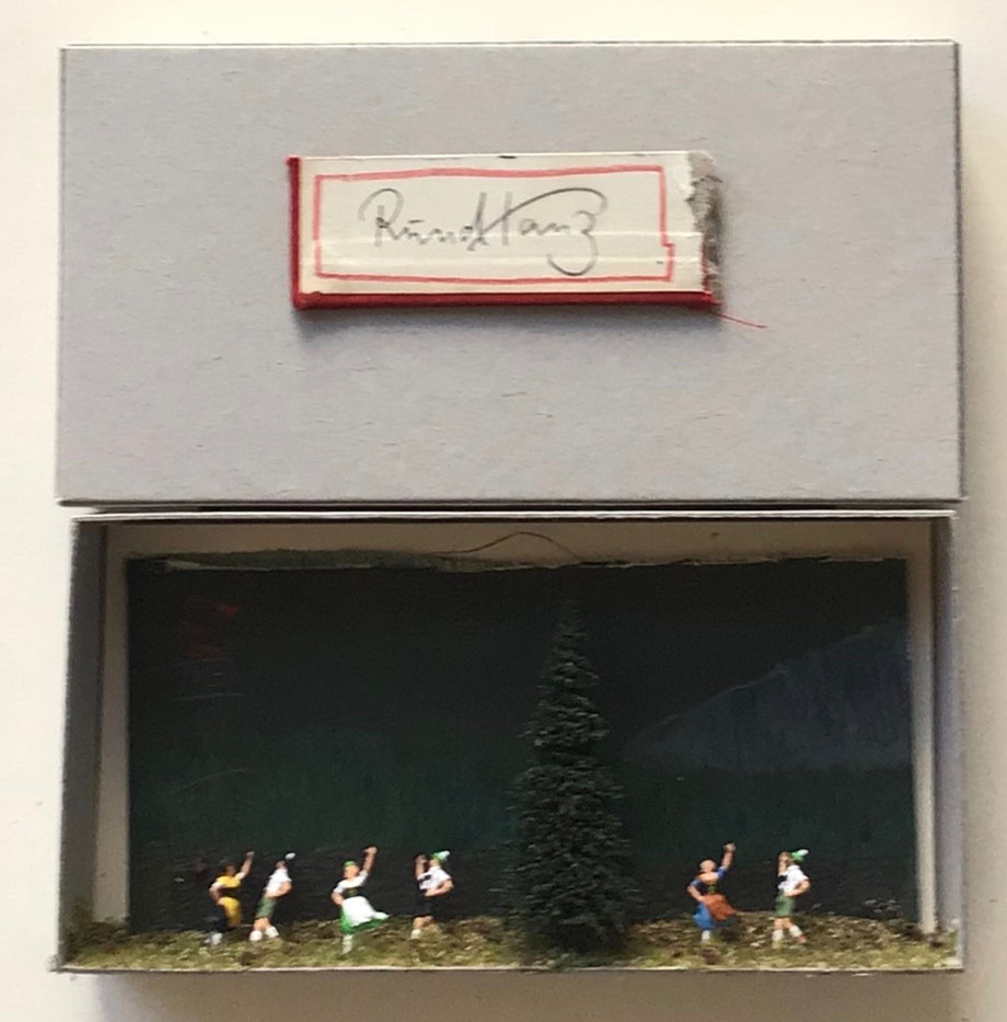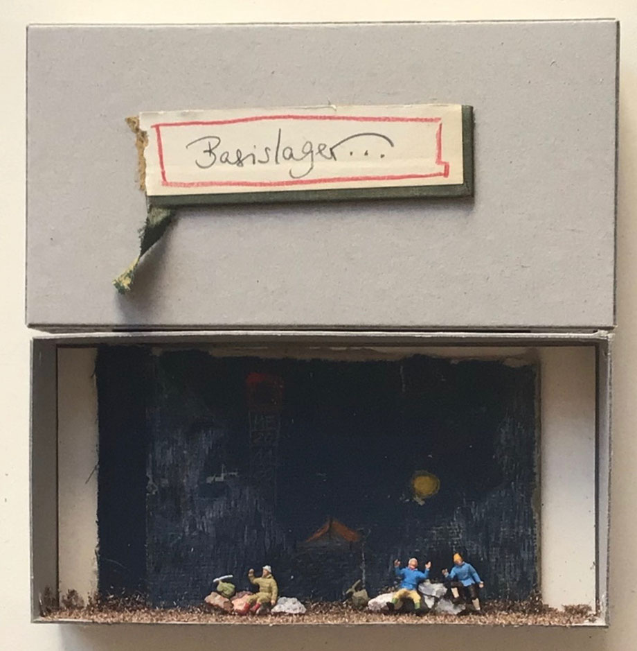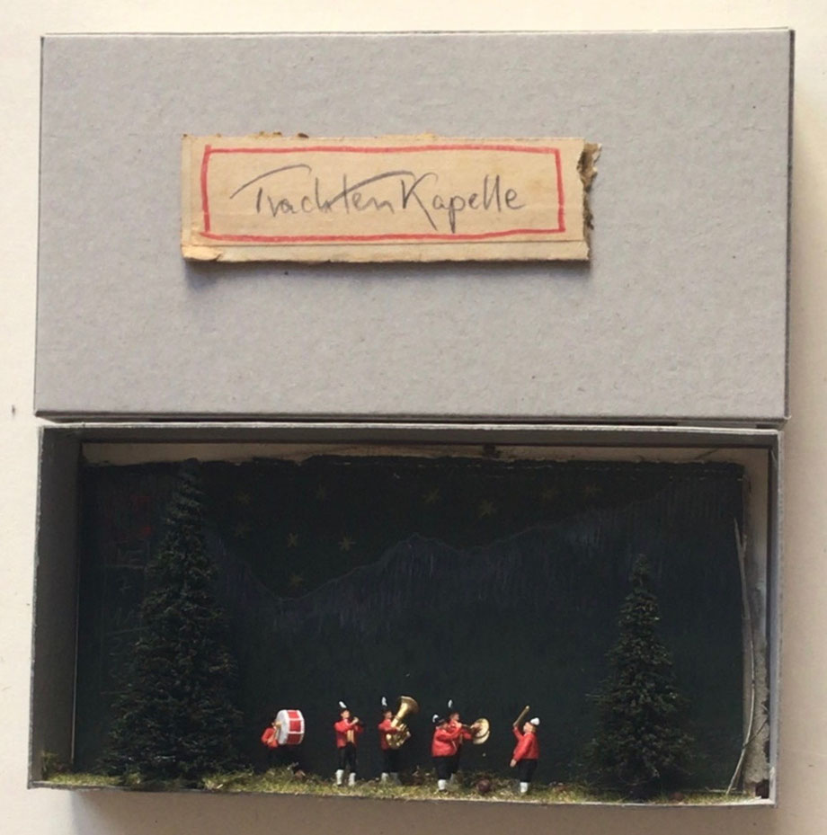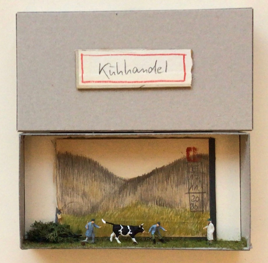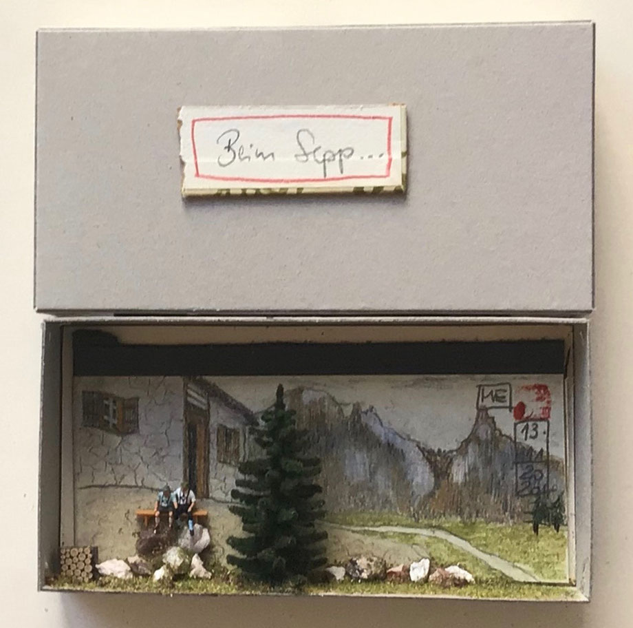 ZEICHNUNG/OBJEKT/KUNSTWERKSTÜCK, BLEISTIFT/FARBSTIFT AUF ALTEM BUCHDECKEL, 9 X 18 CM,, 2020, © MARTINA ETIENNE