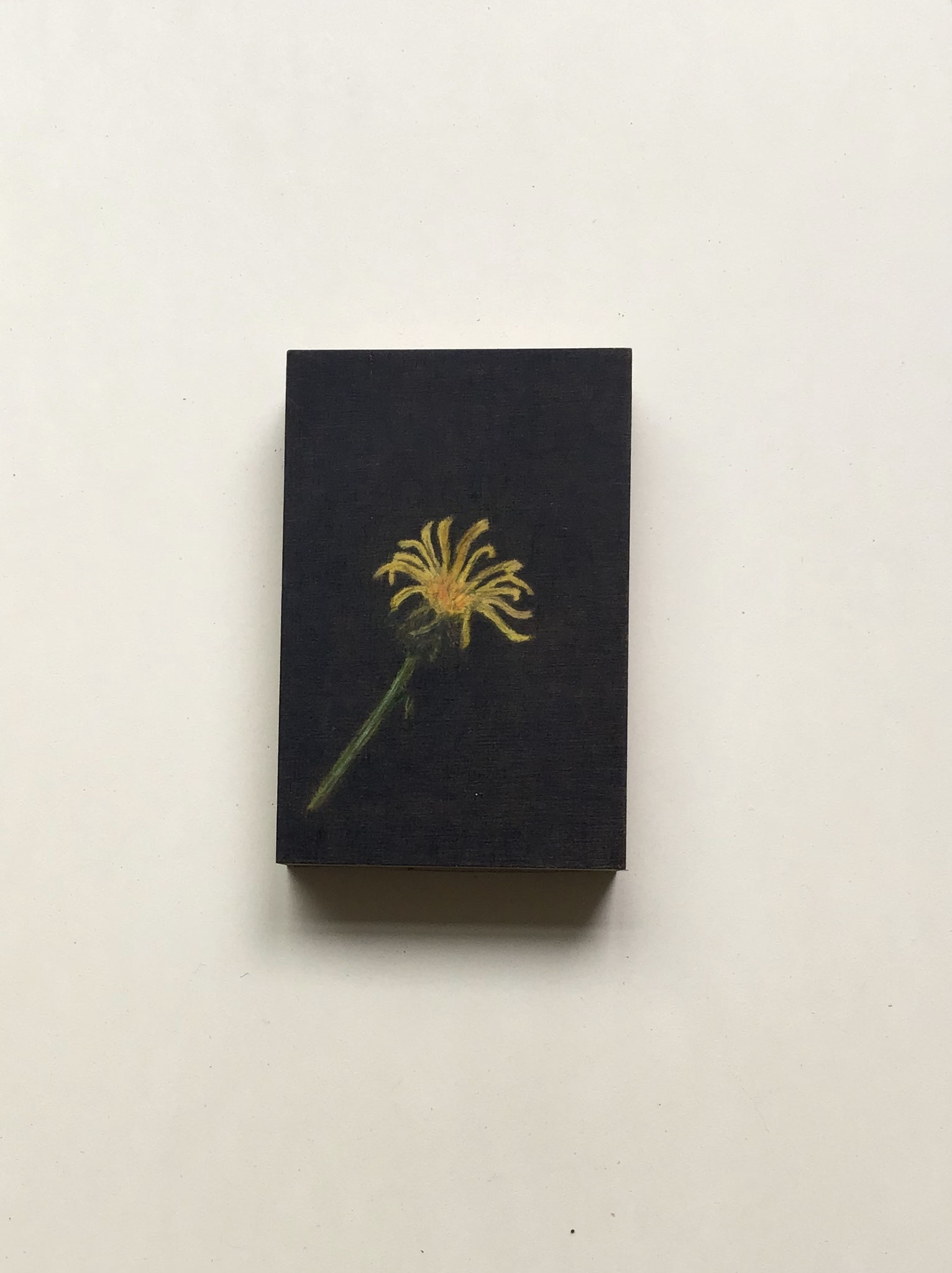 ZEICHNUNG/OBJEKT/KUNSTWERKSTÜCK, BLEISTIFT/FARBSTIFT AUF ALTEM BUCHDECKEL, 18,6 X 18,3 CM, 2020 © MARTINA ETIENNE