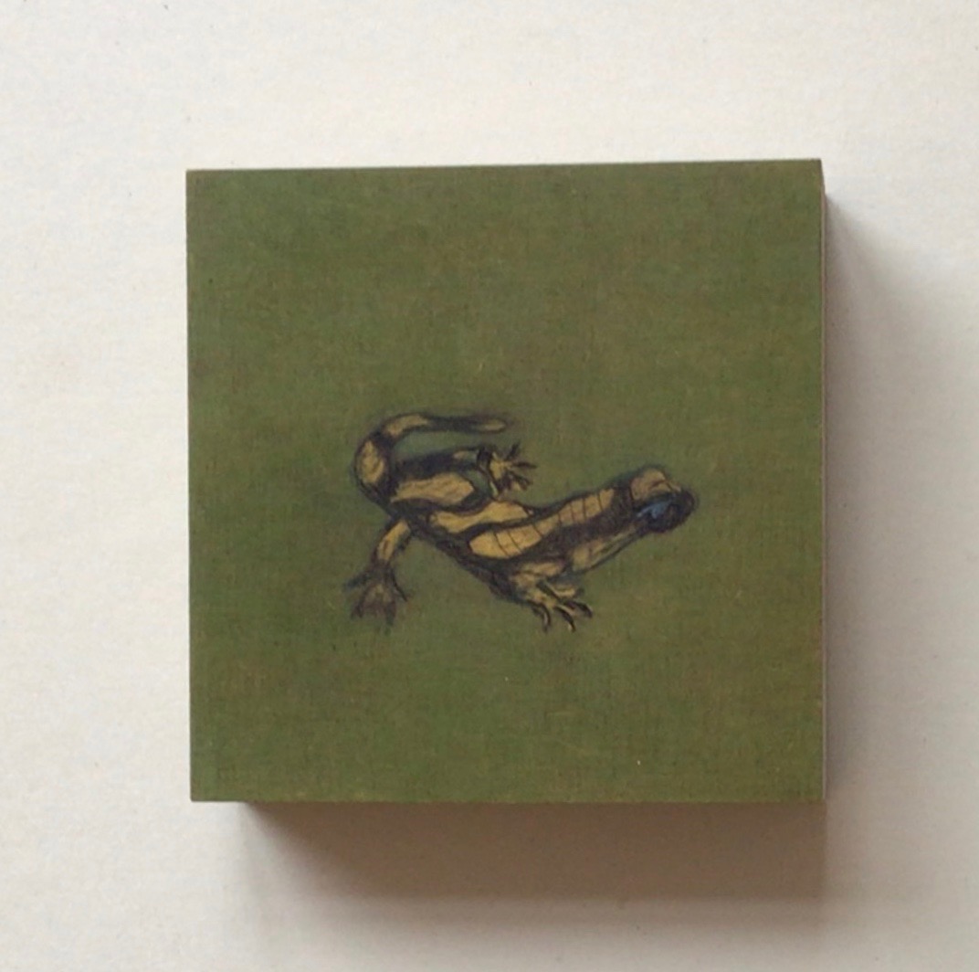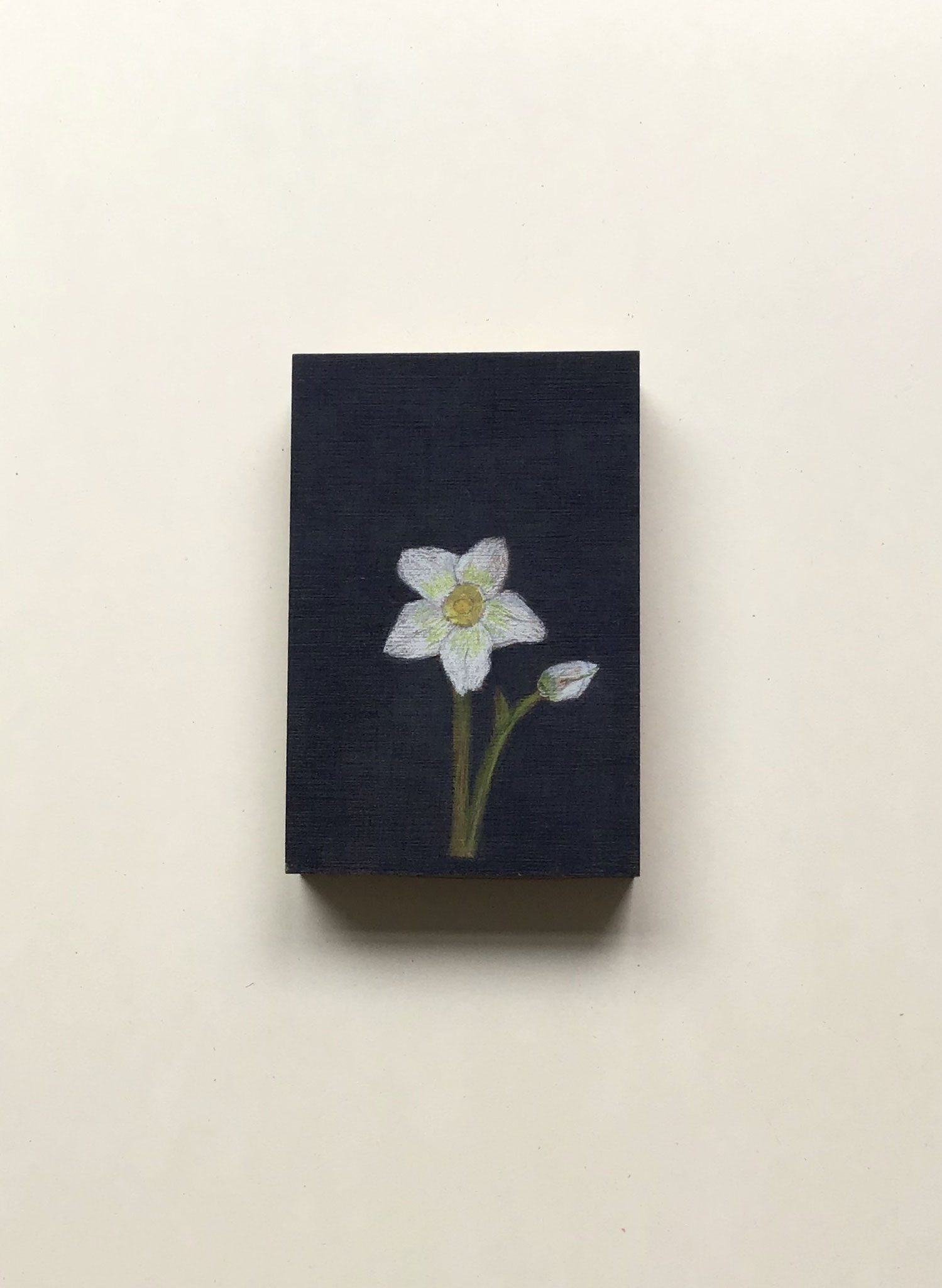 ZEICHNUNG/OBJEKT/KUNSTWERKSTÜCK, BLEISTIFT/FARBSTIFT AUF ALTEM BUCHDECKEL, 18,6 X 18,3 CM2020, © MARTINA ETIENNE