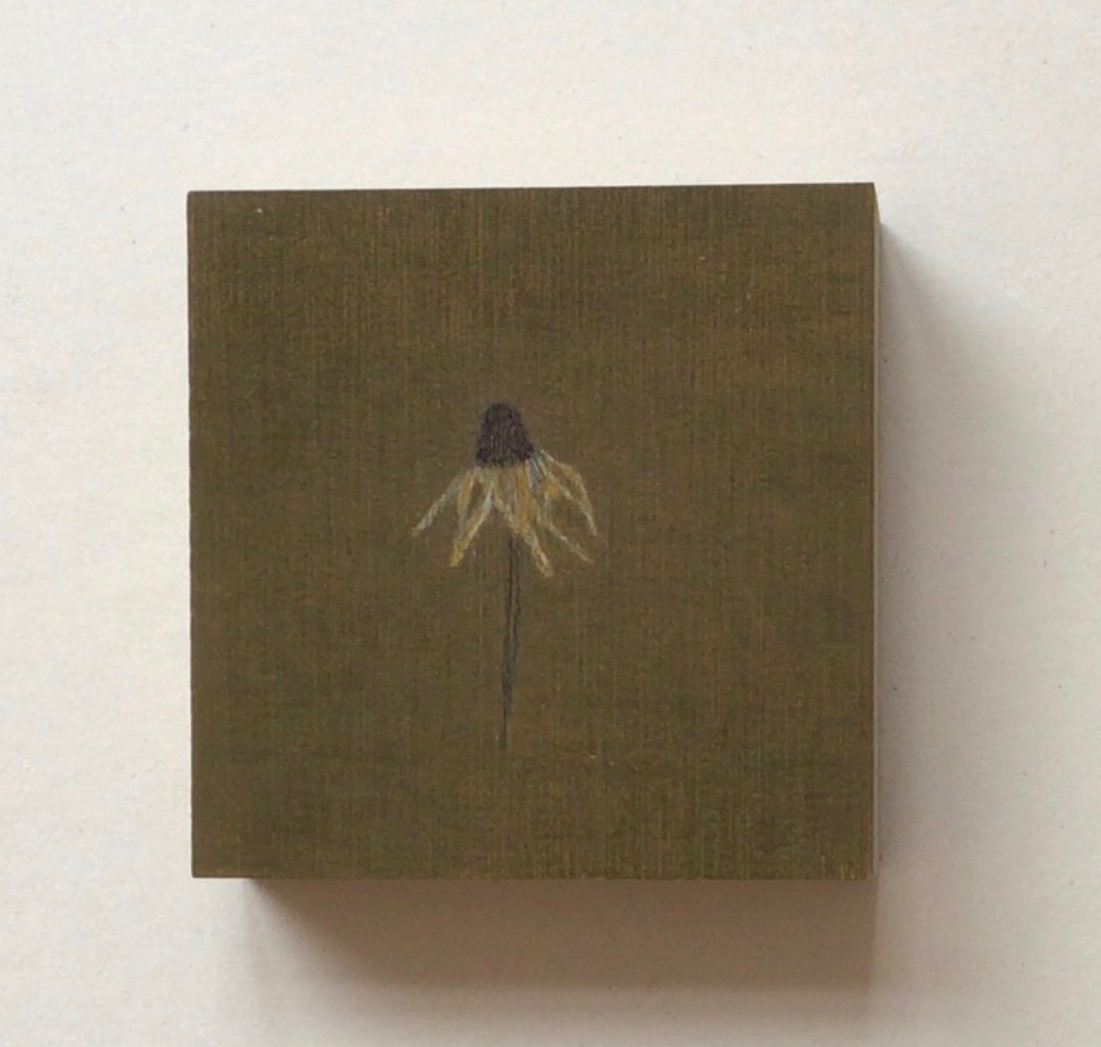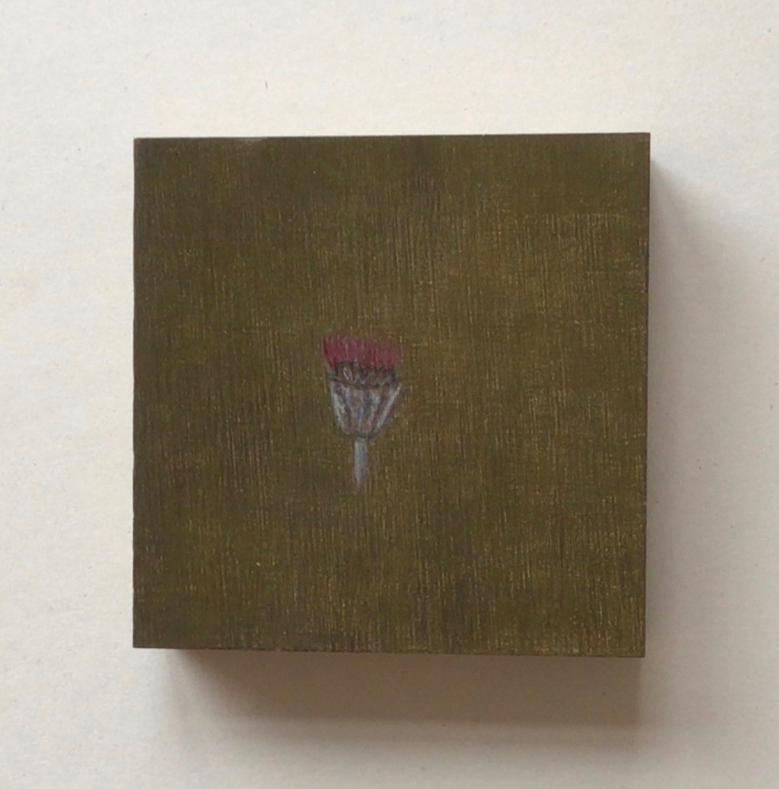ZEICHNUNG/OBJEKT/KUNSTWERKSTÜCK, BLEISTIFT/FARBSTIFT AUF ALTEM BUCHDECKEL, 18,6 x 18,3 CM, 2020 © MARTINA ETIENNE