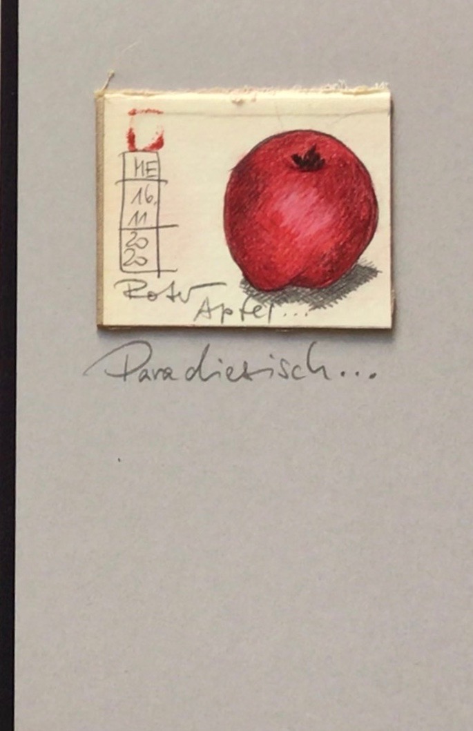 "PARADIESISCH..." - IST EIN KULINARISCHES REISEBUCH - BIBLIOPHIL, EMOTIONAL, HEITER UND VOLLER GENUSS. JEDES EIN UNIKAT, DAS MIT DER ORIGINAL-ZEICHNUNG EINES "ROTEN APELS" VEREDELT WIRD.