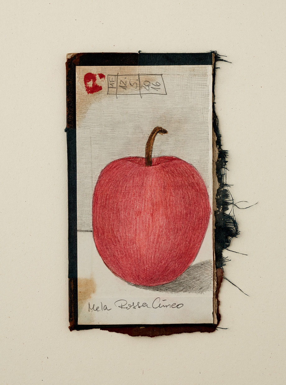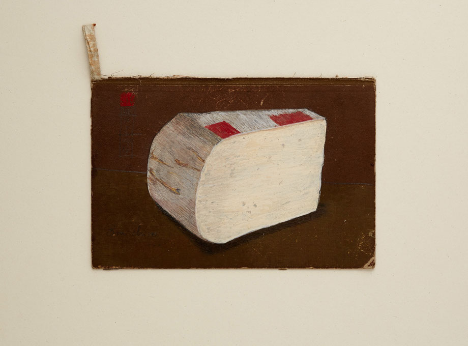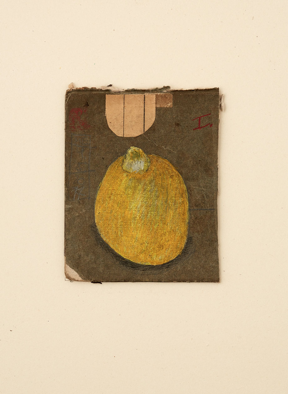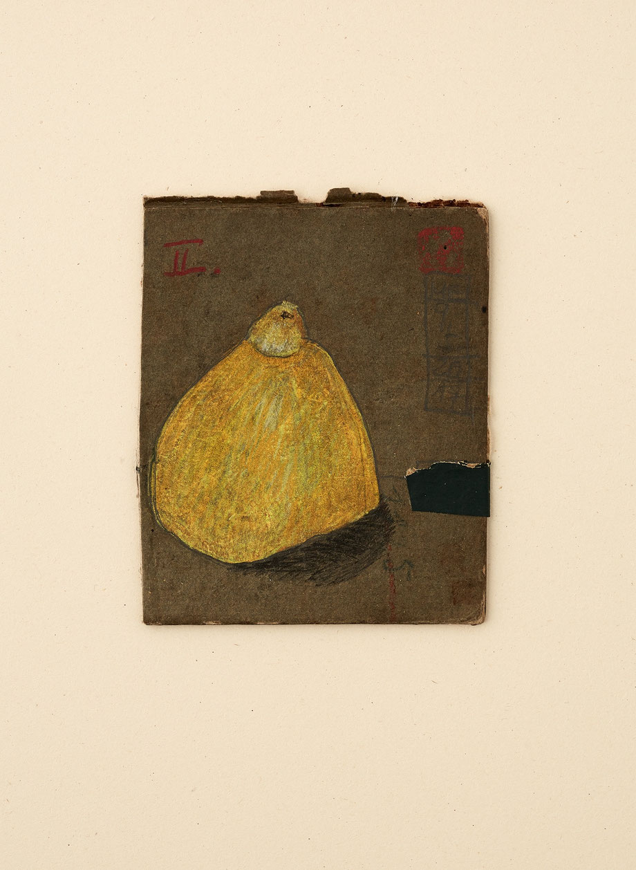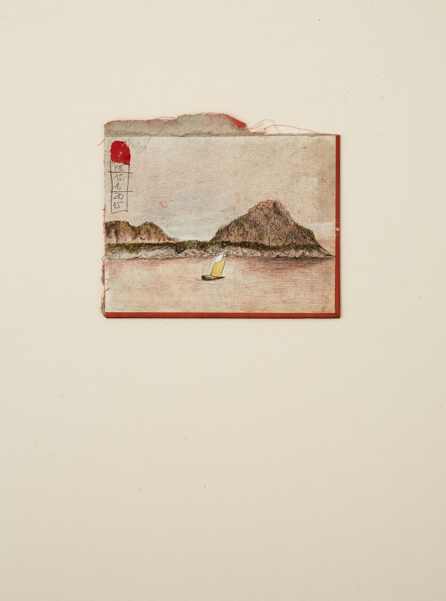 ZEICHNUNG, BLEISTIFT/FARBSTIFT AUF ALTEM BUCHDECKEL, 24 X 18 CM, AUFGEZOGEN AUF FINNISCHE HOLZPAPPE, 2017, © MARTINA ETIENNE