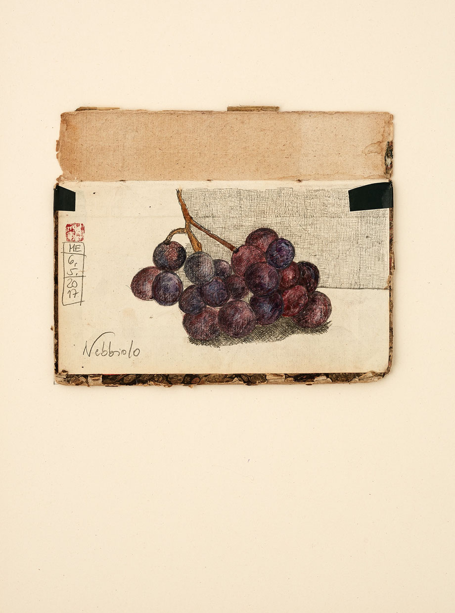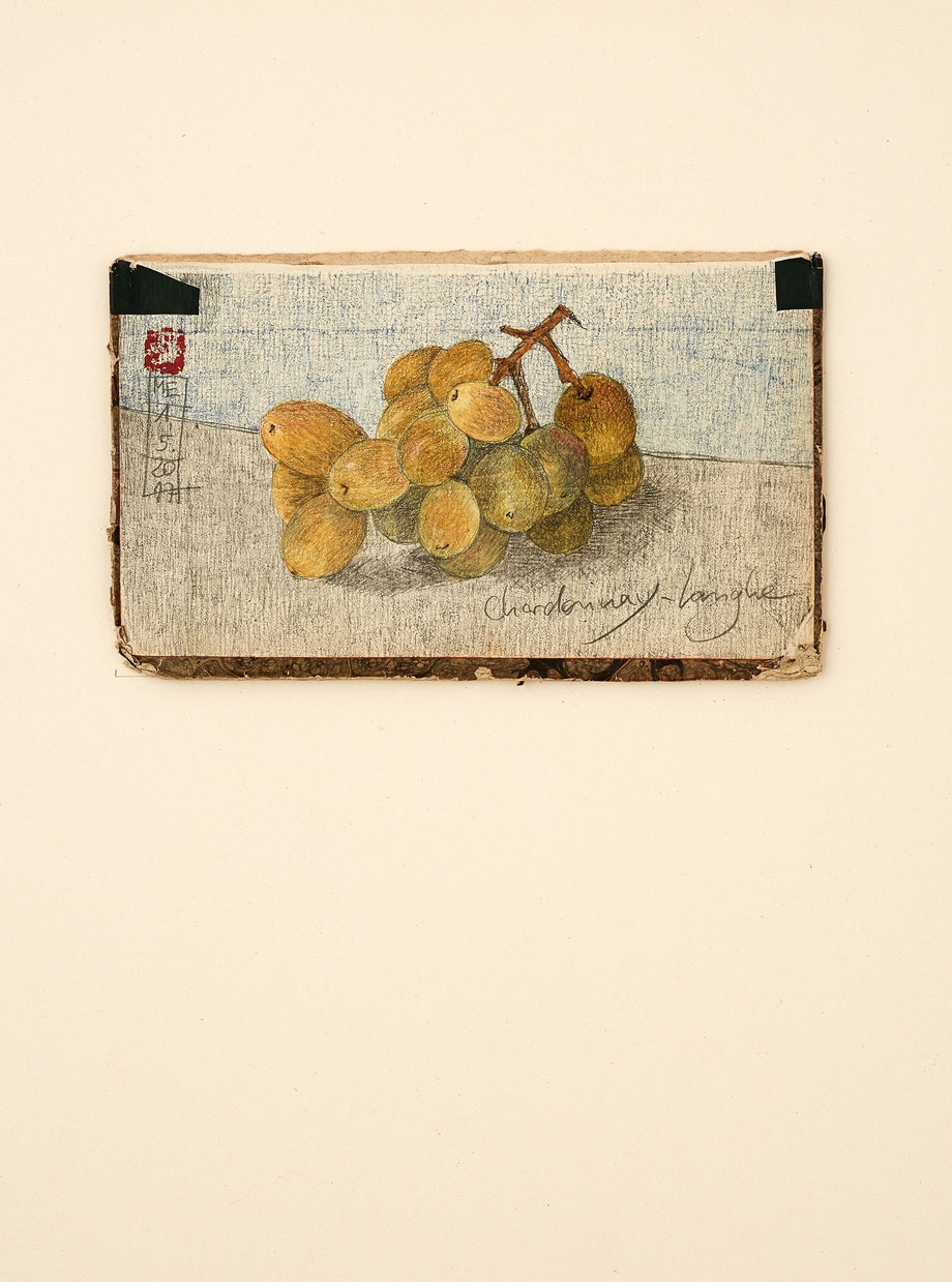 ZEICHNUNG, BLEISTIFT/FARBSTIFT AUF ALTEM BUCHDECKEL, 30 X 40 CM, AUFGEZOGEN AUF FINNISCHE HOLZPAPPE, 2017, © MARTINA ETIENNE